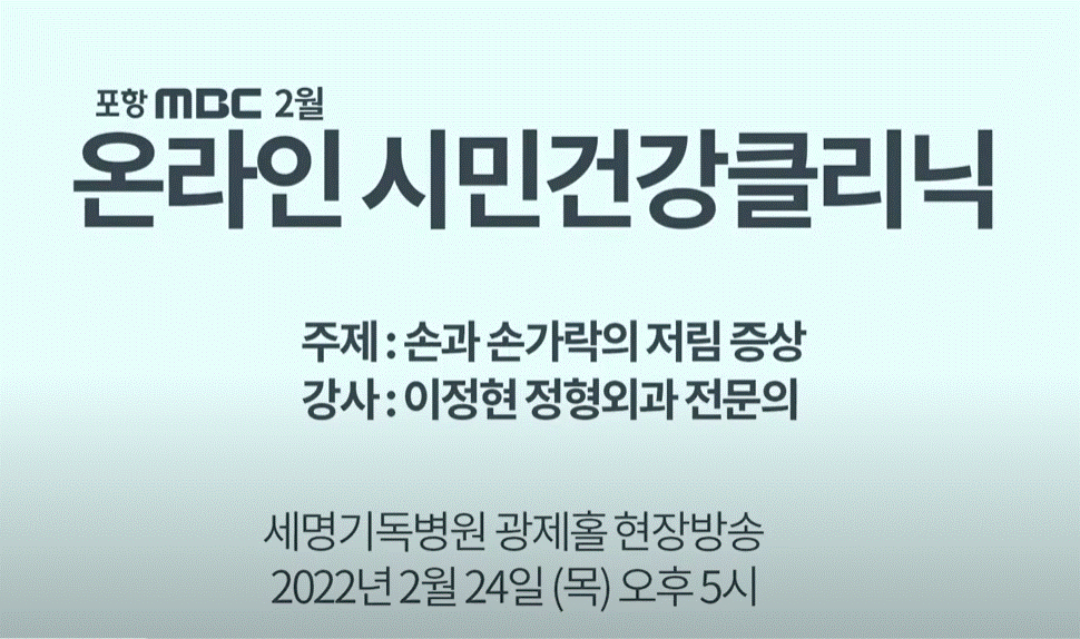 포항MBC 2월 온라인 시민건강클리닉 - 손과 손가락의 저림 증상