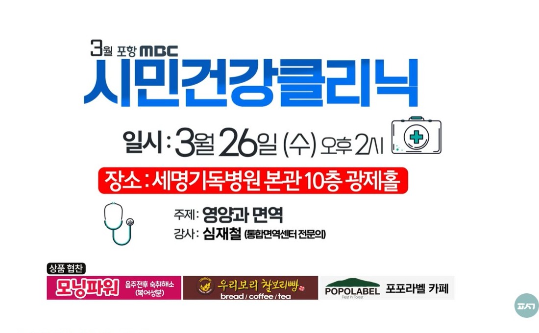 포항MBC 2025년 3월 시민건강클리닉 예고 - 영양과 면역