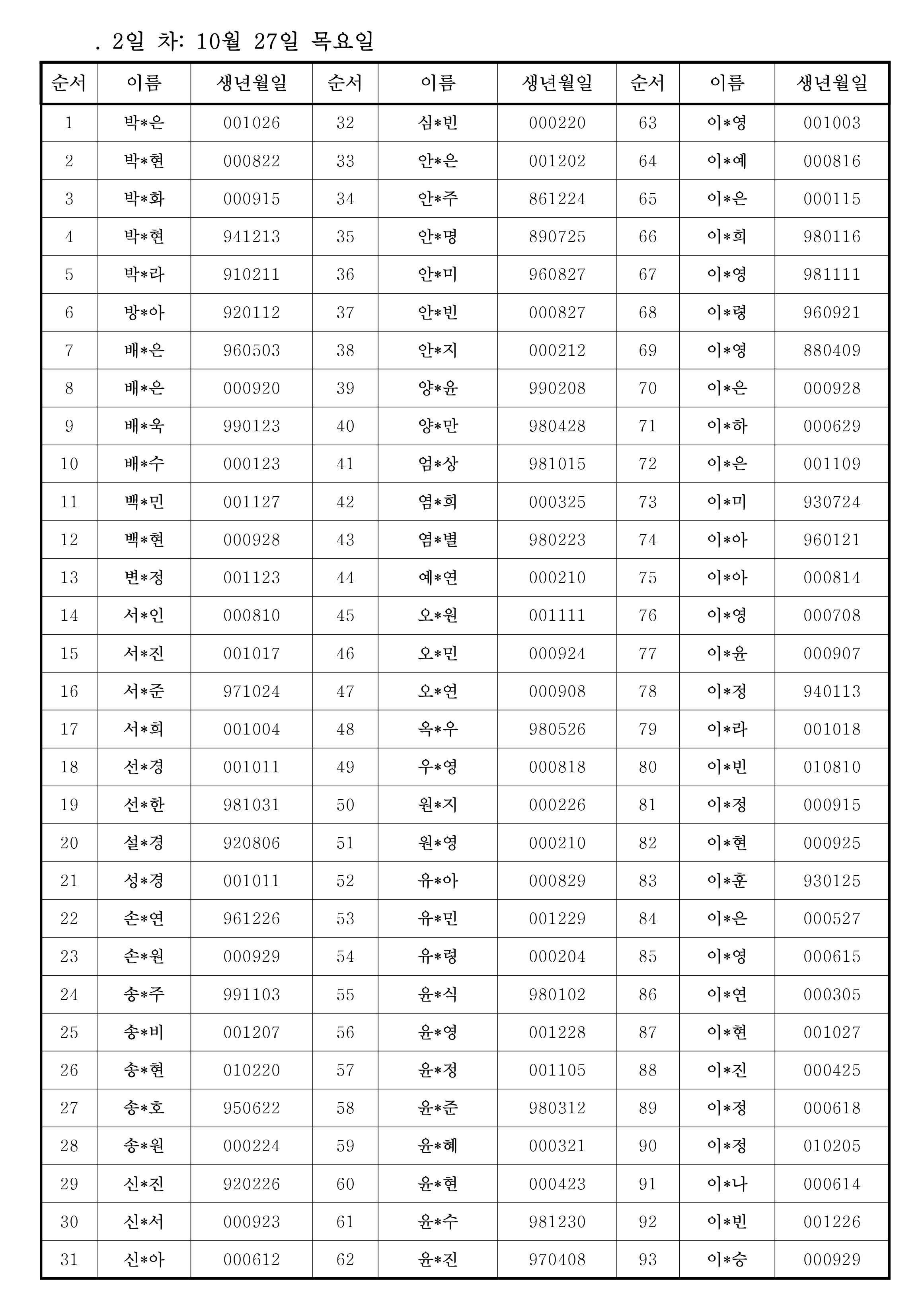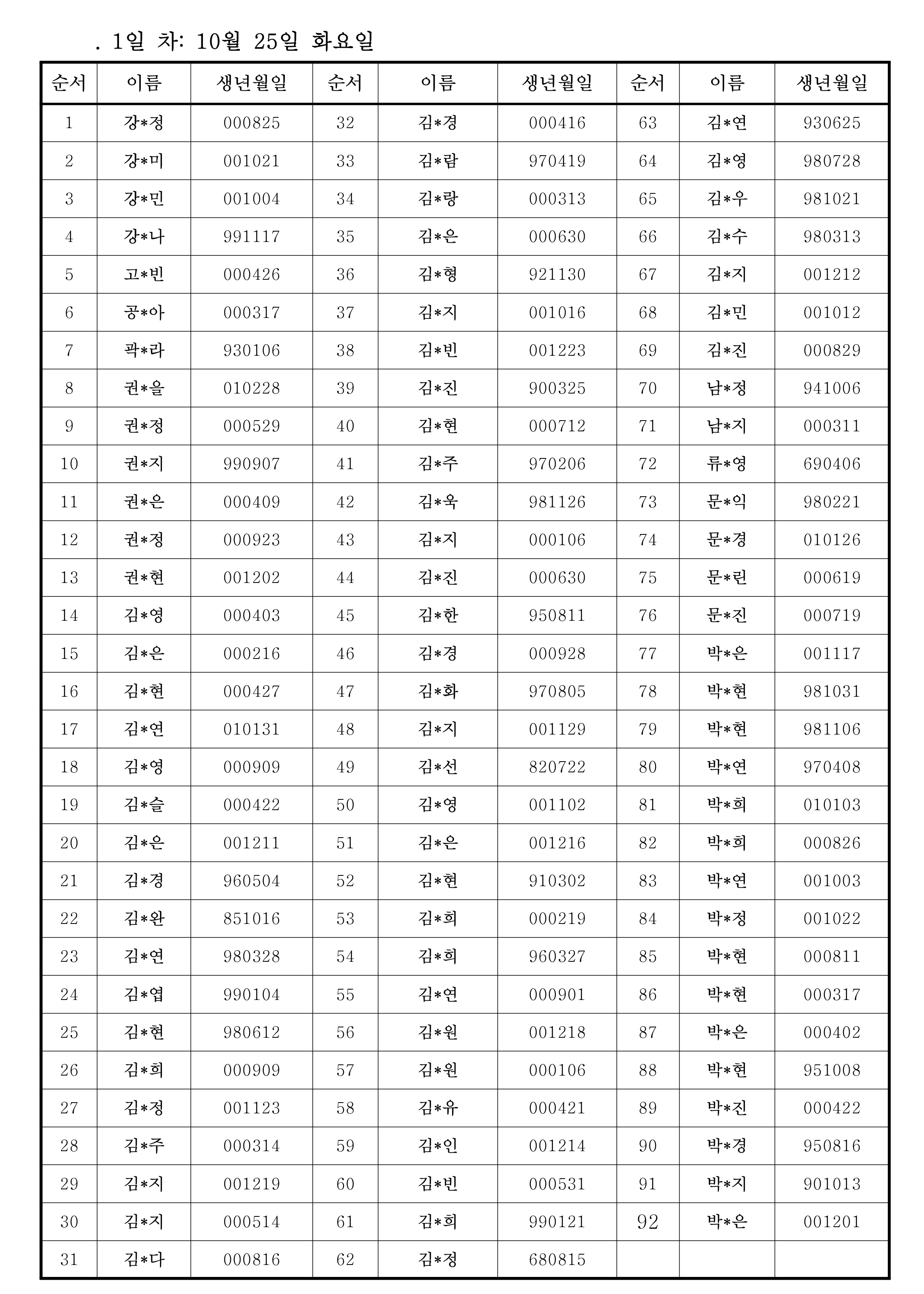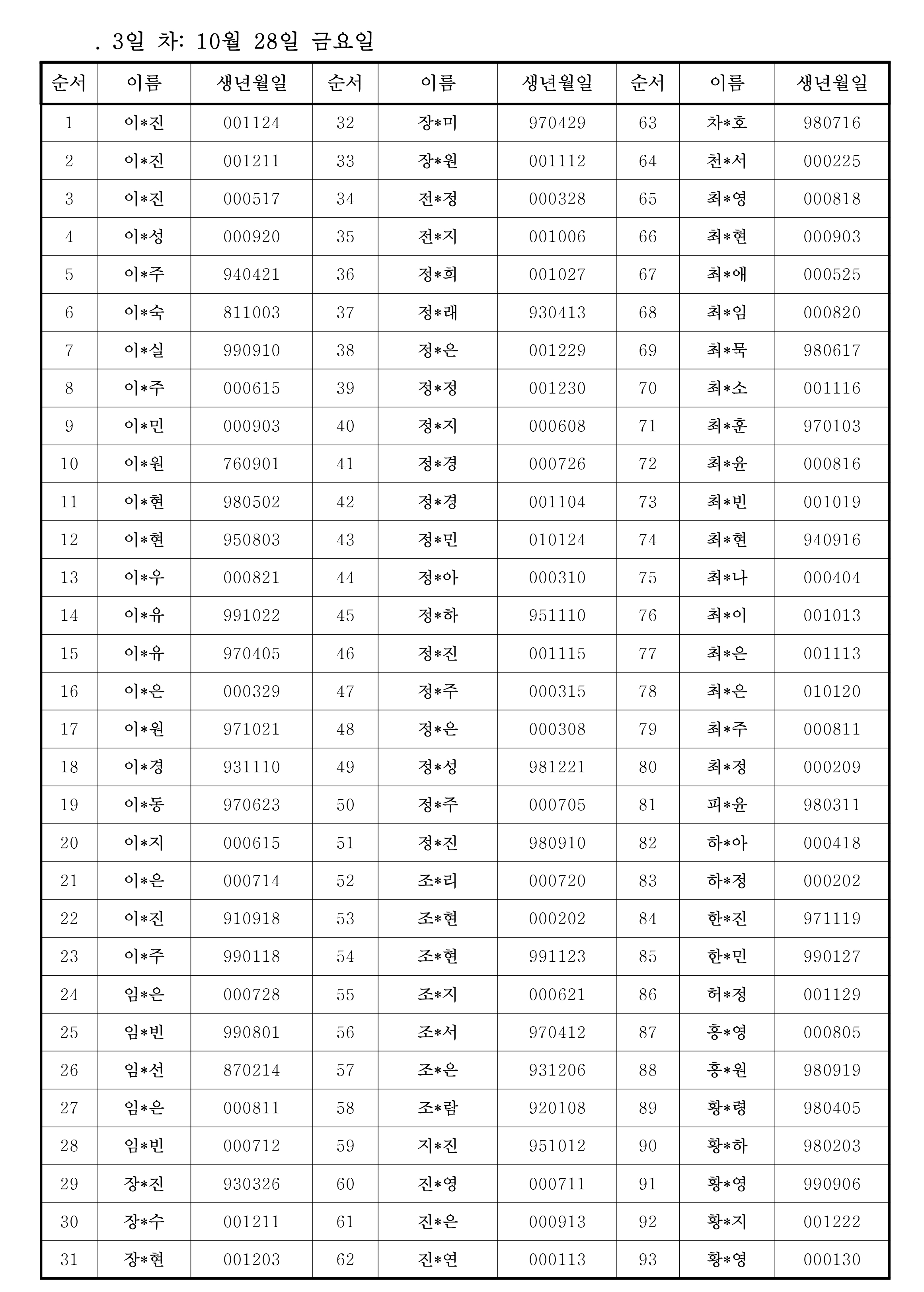 . 명단은 개인정보 보호 차원에서 이름 가운데 부분은 *표로 처리함