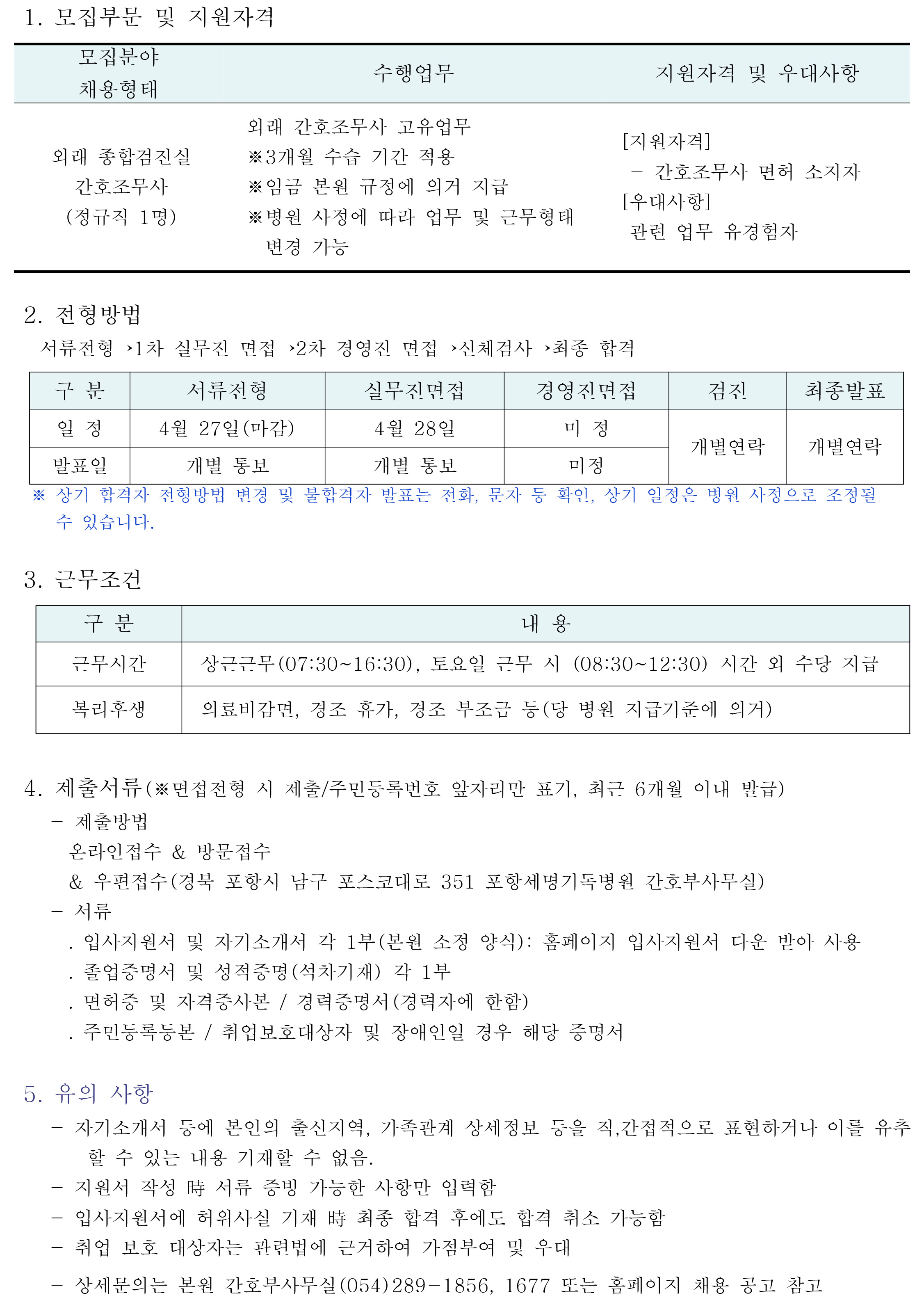 포항세명기독병원에 입사지원을 해주신 모든 분들께 감사드립니다.