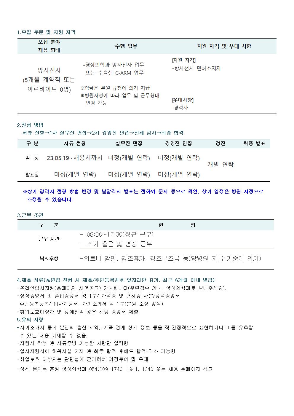 영상의학과 방사선사 채용 공고(마감)