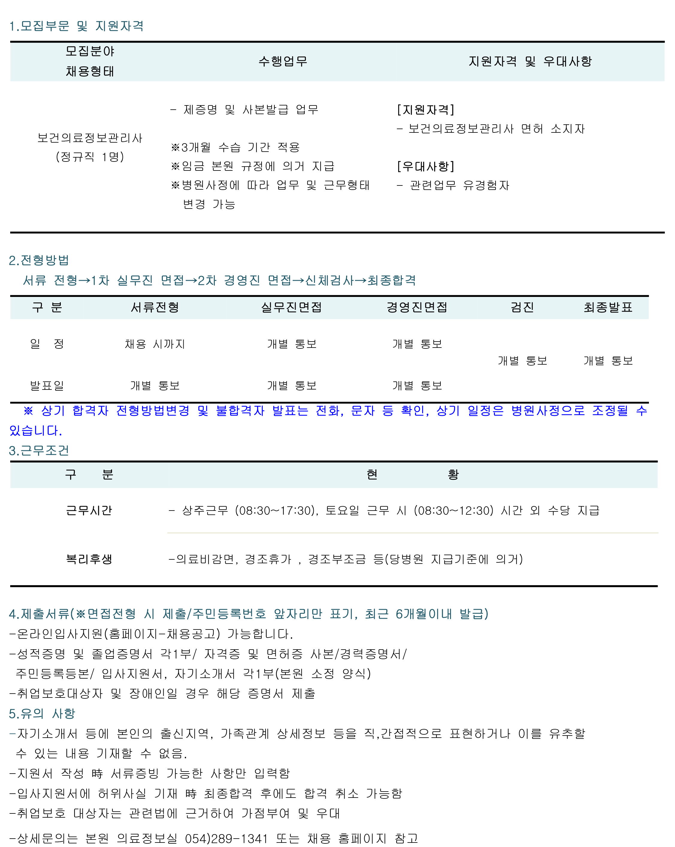 포항세명기독병원에 입사지원을 해주신 모든 분들께 감사드립니다.