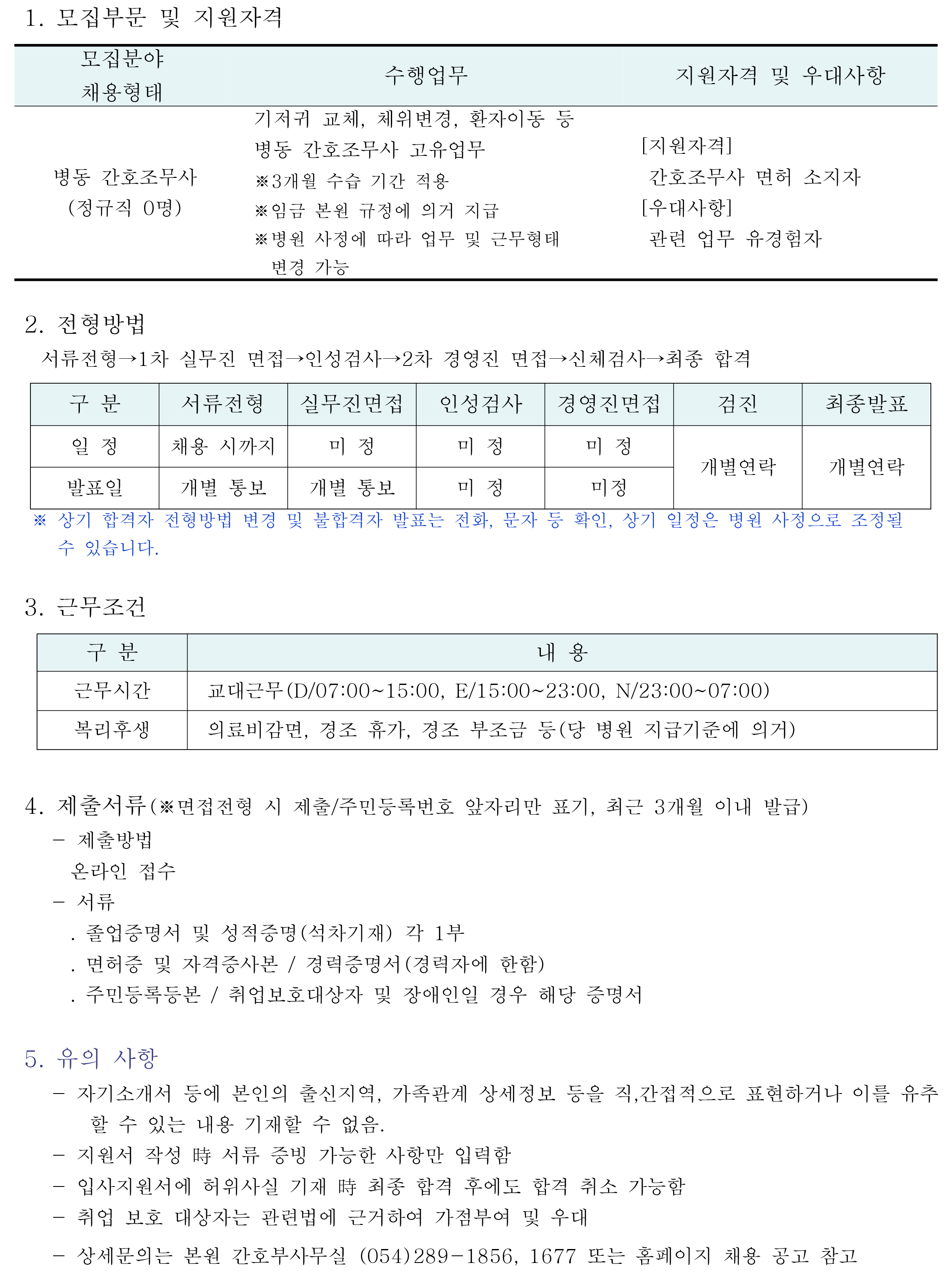 포항세명기독병원에 입사지원을 해주신 모든 분들께 감사드립니다.