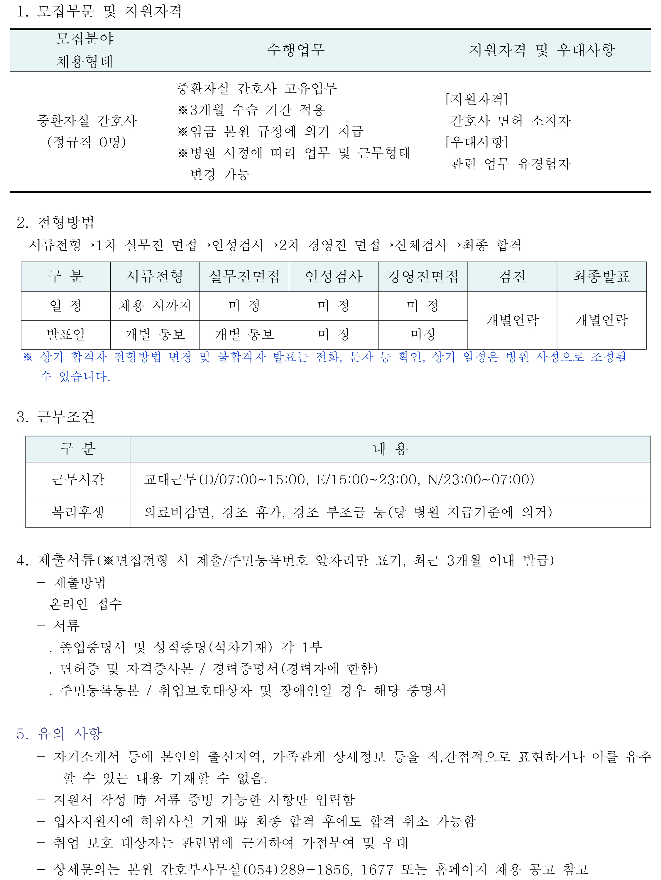 포항세명기독병원에 입사지원을 해주신 모든 분들께 감사드립니다.
