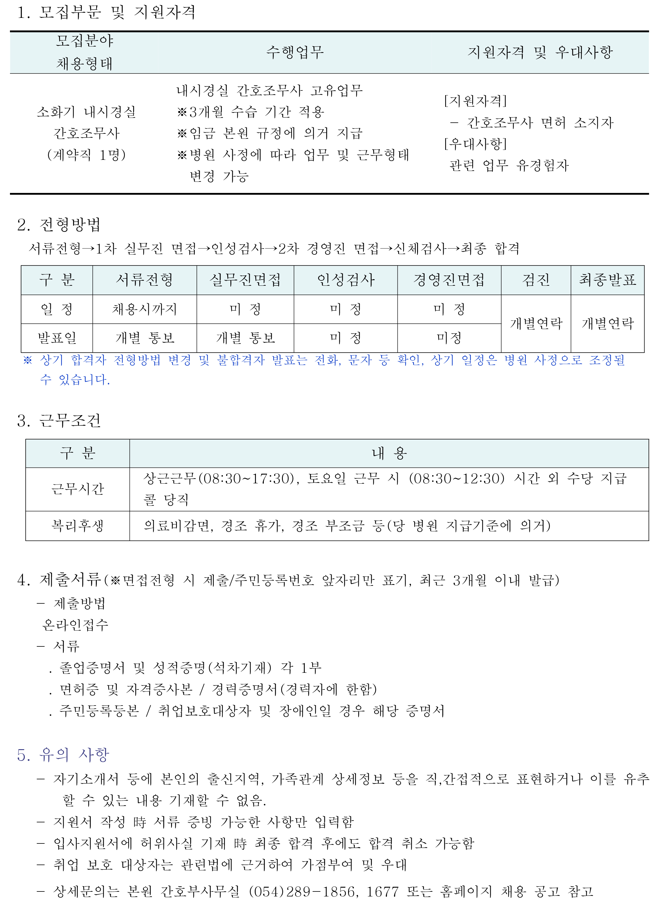소화기내시경센터 간호조무사 채용 공고(마감)