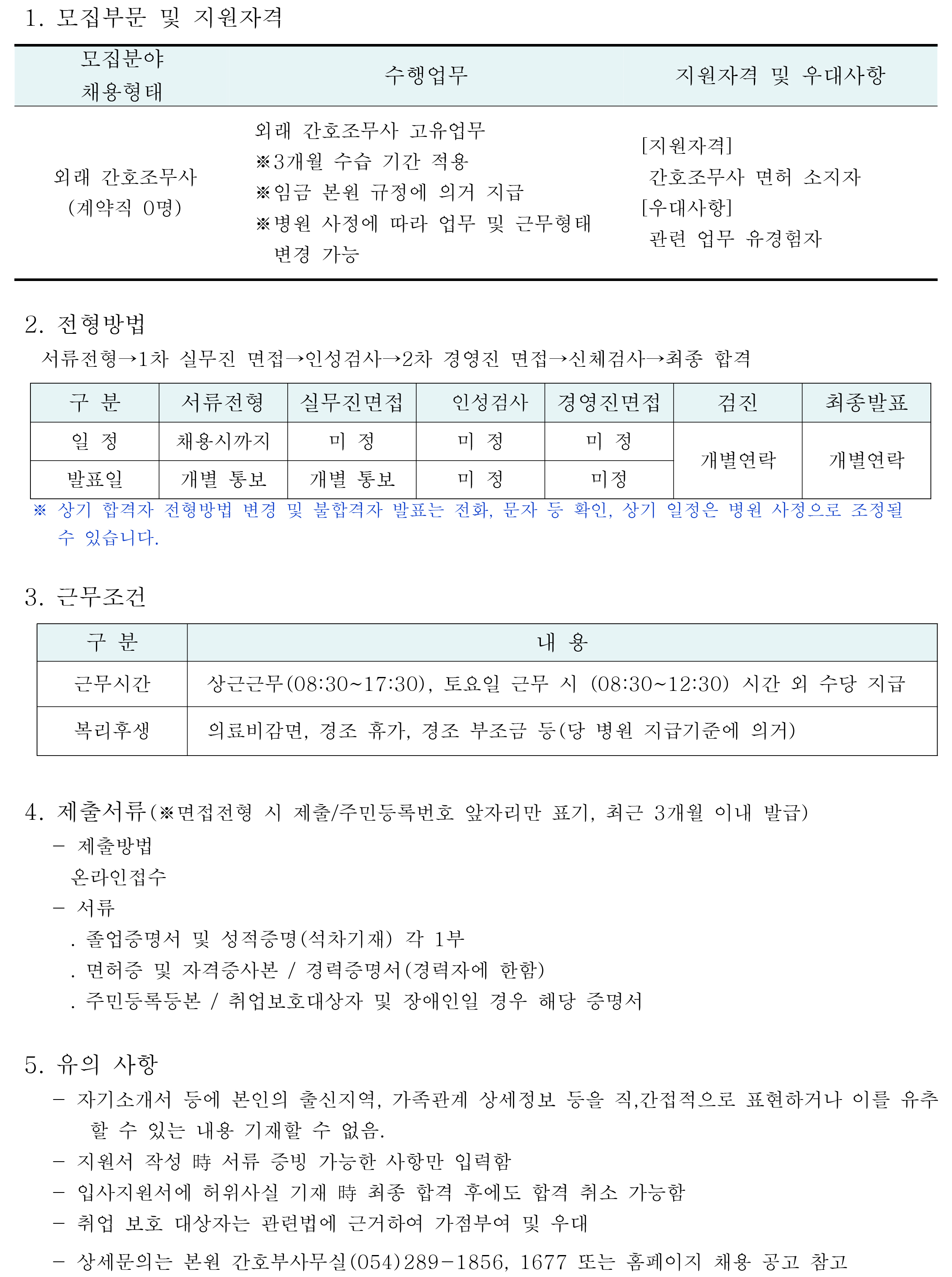 포항세명기독병원에 입사지원을 해주신 모든 분들께 감사드립니다.