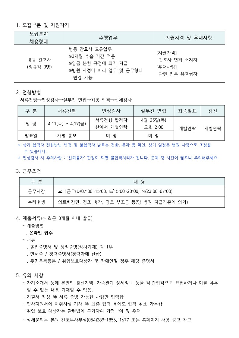 병동간호사 채용공고
