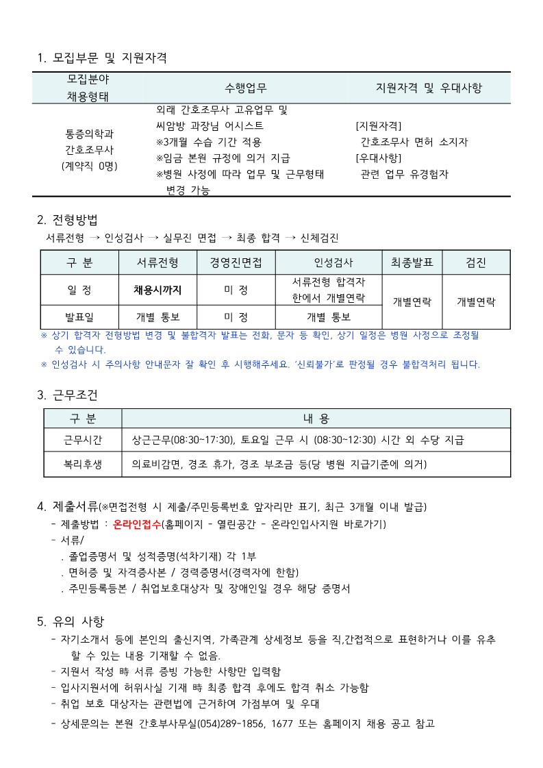 포항세명기독병원에 입사지원을 해주신 모든 분들께 감사드립니다.
