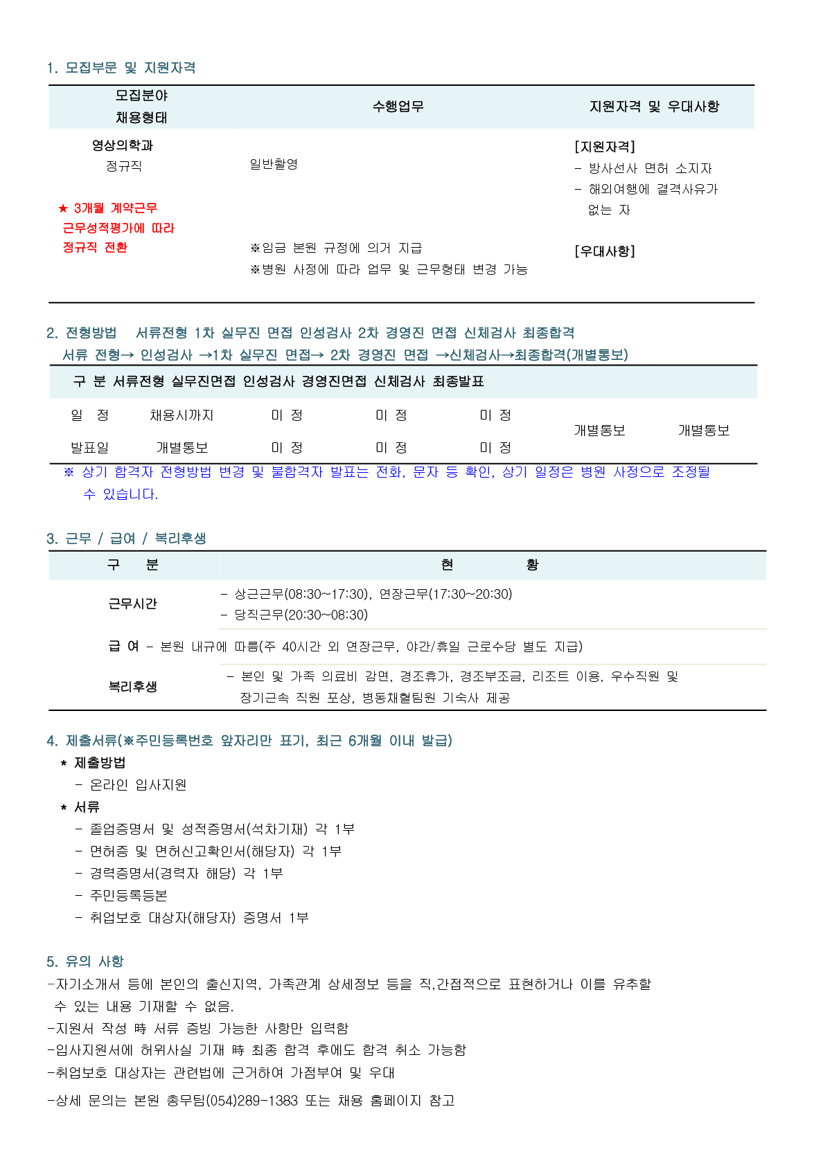 영상의학과 방사선사 채용공고(마감)