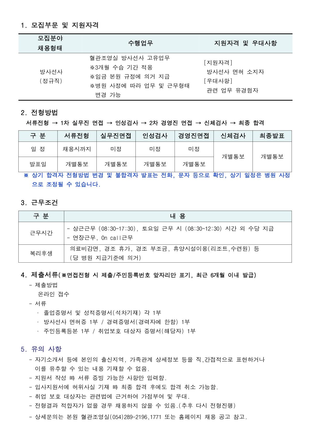 혈관조영실(방사선사) 채용공고_1 |