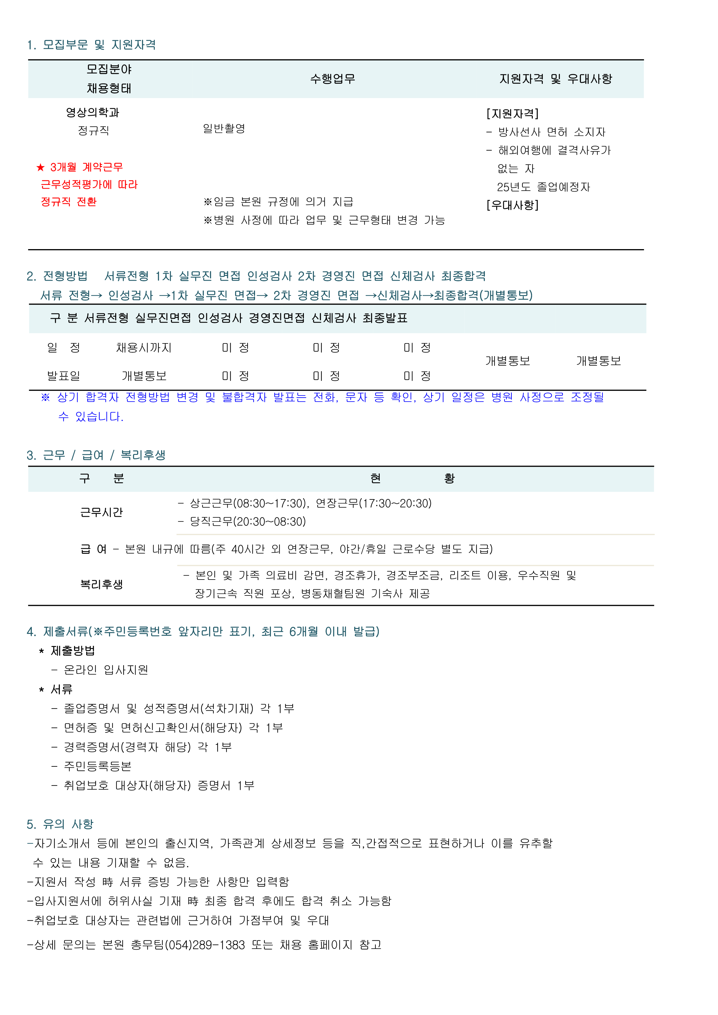 영상의학과 25년도졸업예정 방사선사 모집 (마감)