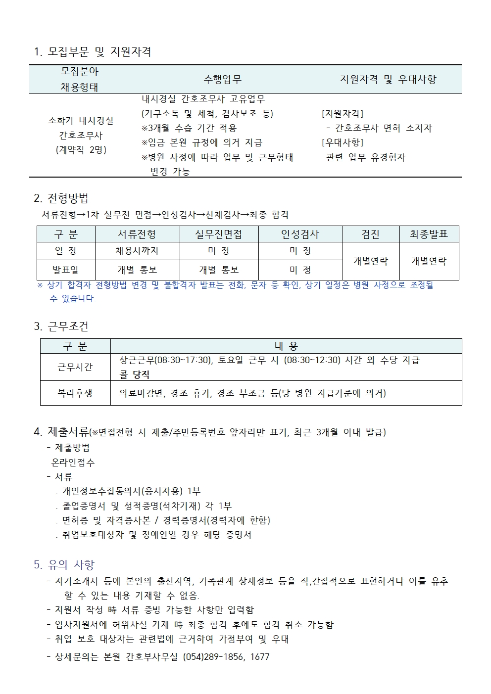 - 입사지원자에 대한 다음과 같은 사항은 병원홈페이지, 전화, 문자전송으로 고지합니다.