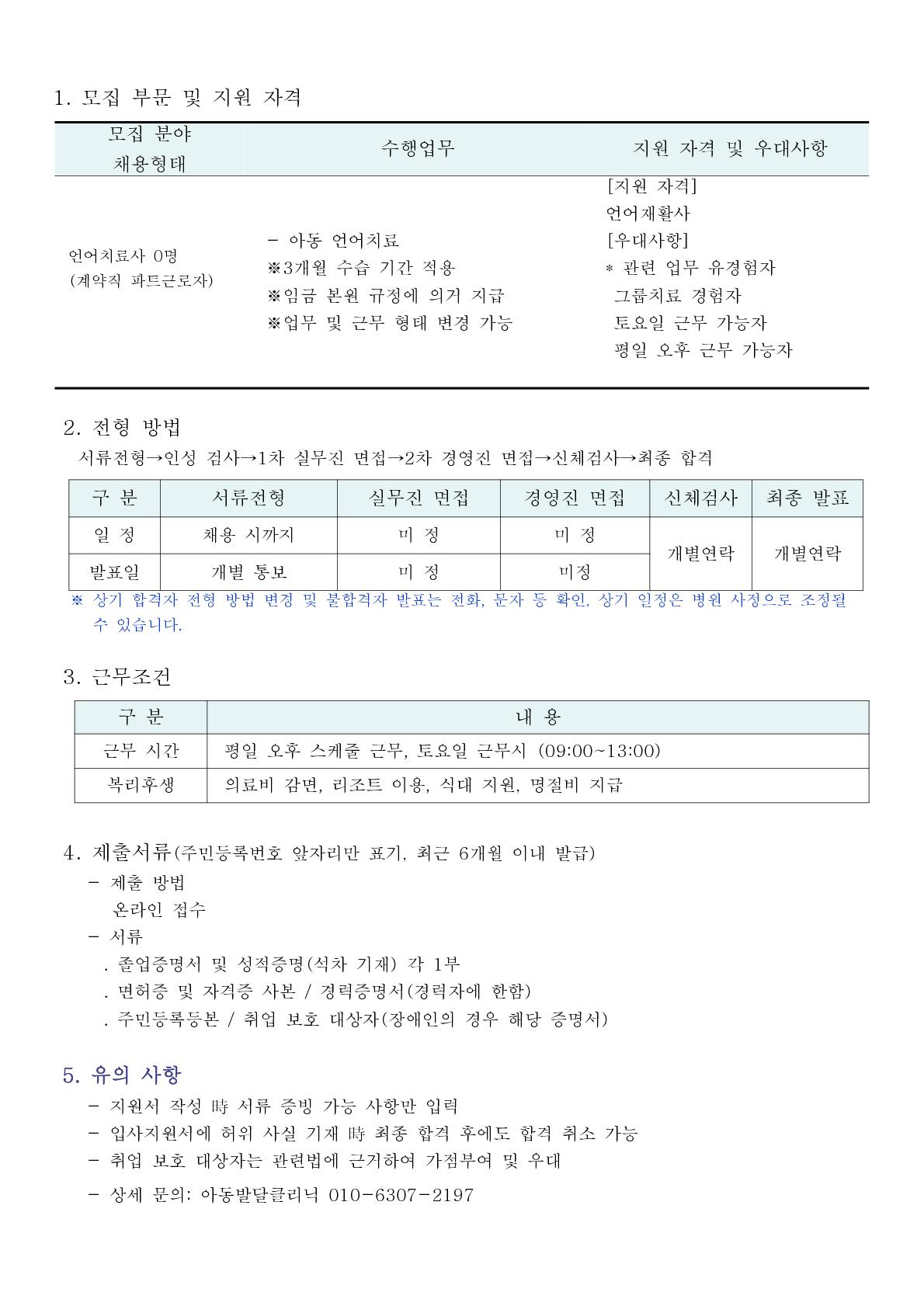 - 채용서류 보관기간 : 채용여부가 확정된 날부터 15일까지