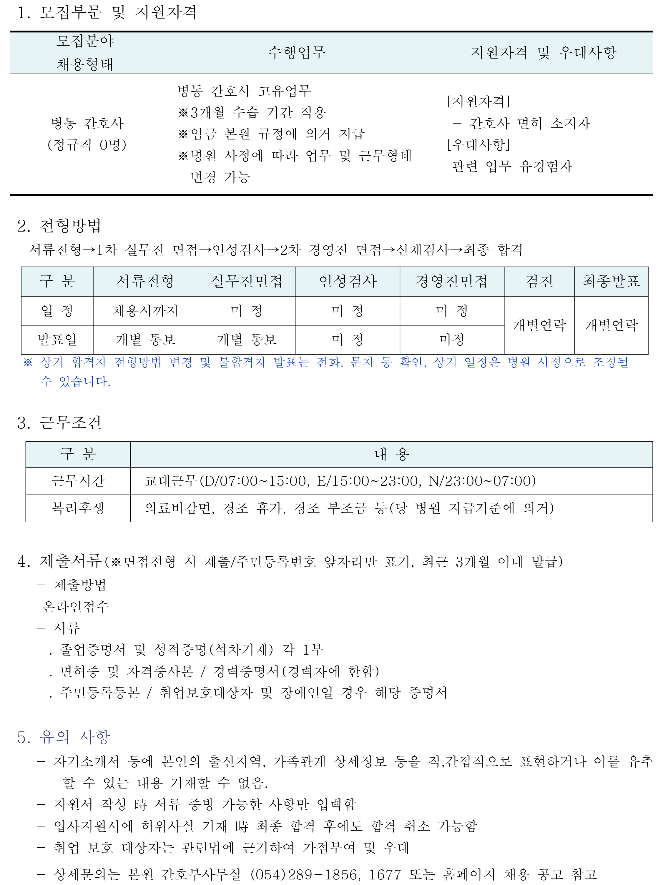 병동 간호사 채용공고 |