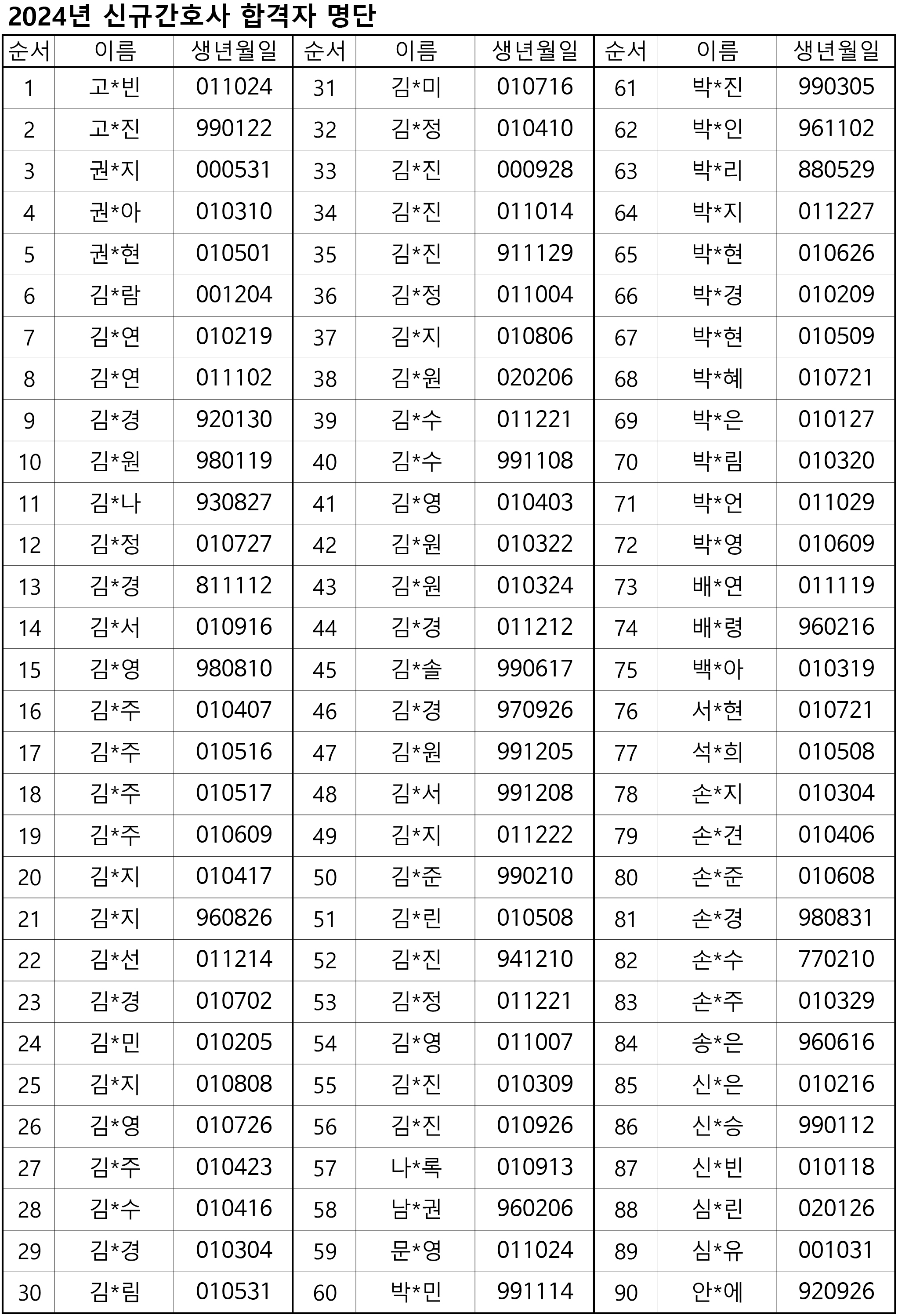 2024년 신규간호사 합격자명단(홈페이지)-1 |