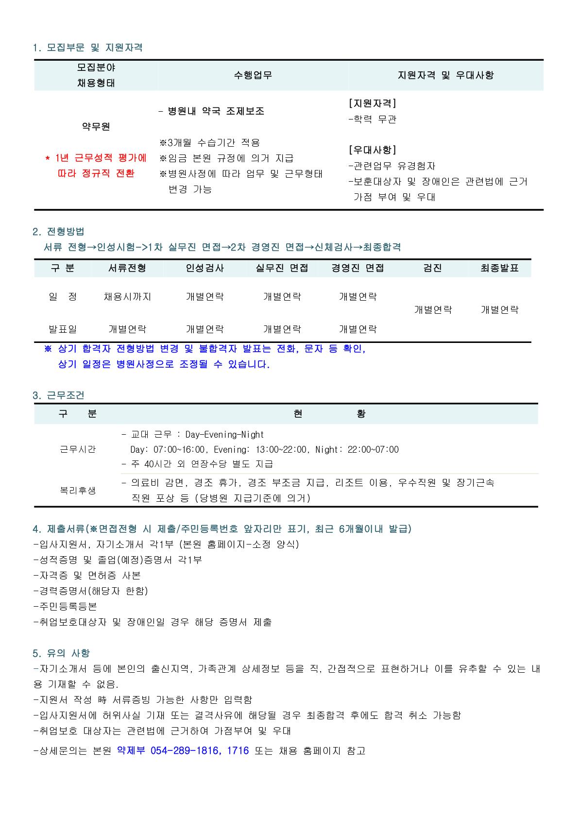 - 입사지원자에 대한 다음과 같은 사항은 병원홈페이지, 전화, 문자전송으로 고지합니다.