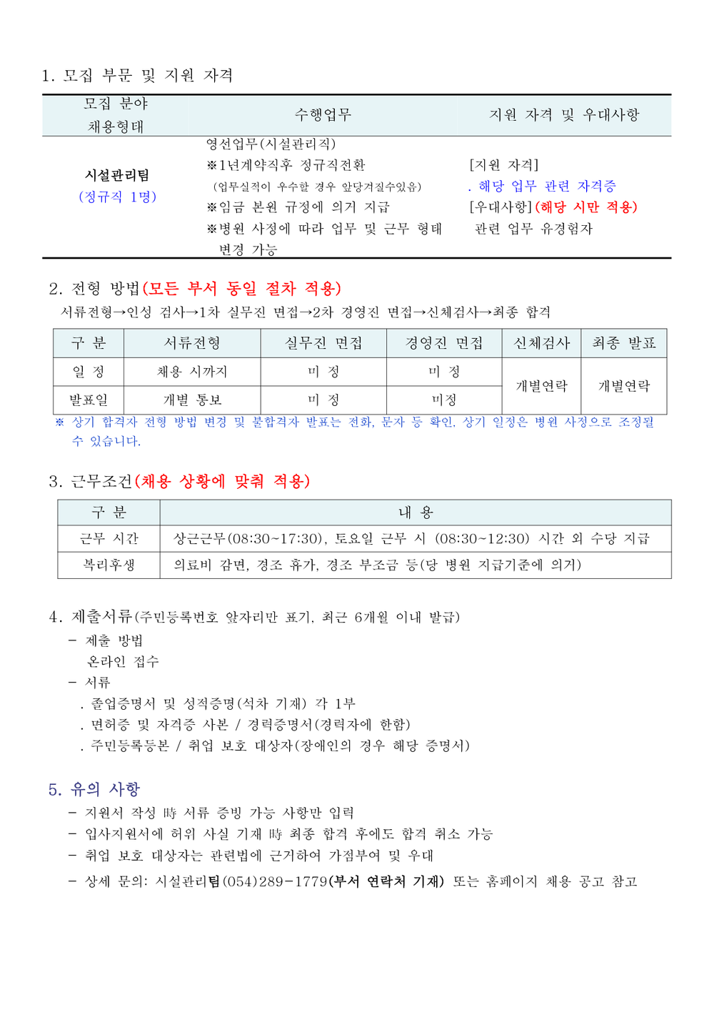 시설관리팀 채용공고(마감)