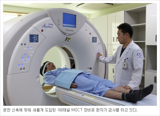 본관 신축에 맞춰 새롭게 도입된 160채널 MSCT 장비로 환자가 검사를 하고 있다. |