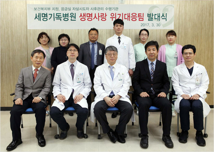포항 세명기독병원(병원장 한동선)이 자살시도자를 위한 위기대응팀을 구성하고 30일 발대식을 가졌다.보건복지부로부터 2017년 응급실 기반 자살시도자 사후관리 사업 수행기관으로 선정된 세명기독병원은 최근 "생명사랑 위기대응팀"을 만들었다. 정신건강의학과, 응급의학과 전문의와 함께 사회복지사, 전담간호사 등 전문인력 6명이 모여 팀을 꾸렸다.위기대응팀은 앞으로 자살시도자에 대한 응급처치에 총력을 기울일 방침이다. 응급의학과는 자살시도자의 신체 안정을 도모하고 정신건강의학과에서는 상담치료를 진행할 계획이다. 더불어 사회복지사와 전문 간호사의 지원 아래 자살시도자의 신체정신적 안정을 위한 4차례 상담을 실시하고 자살재시도 방지를 위한 사후관리도 제공한다.위기대응팀 총괄팀장을 맡은 정신건강의학과 배경도 과장은 "무엇보다 주변 사람들의 역할과 정신건강 의학적 지지가 자살시도자의 재활에 매우 중요한 역할을 한다"며 "다방면적 지원체계를 구축해 인간 존중과 생명 중요성을 알릴 수 있도록 최선을 다하겠다"고 말했다.
