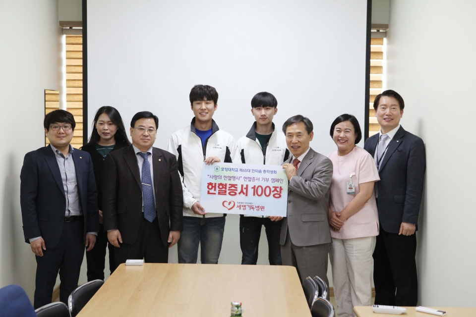 포항대 학생들, 헌혈증서 100장 세명기독병원 기부