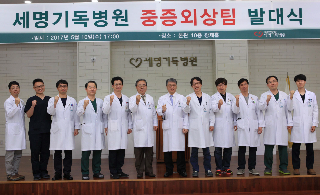 포항세명기독병원은 외과분야 전문의로 구성된 중증외상팀을 구성하고 대강당 광제홀에서 발대식을 가졌다고 11일 밝혔다.흉부외과 윤경찬 팀장을 중심으로 구성된 중증외상팀은 응급의학과·외과·비뇨기과·정형외과 (하지분야)등 외과분야 전문의 13명이 팀원이다. 중증외상팀은 앞으로 응급외상환자가 응급실에 도착하면 외상과 관련된 전문의들이 동시에 협진한 후 신속히 치료방침을 결정하는 방식으로 응급치료, 수술, 중환자실 집중관리를 전담하게 된다.교통사고와 추락 등으로 인한 중증외상 환자의 경우, 우리나라 사망률은 35%로 보고돼 있다. 이는 10~15% 수준인 미국과 일본에 비해 상당히 높은 수치다.병원 측은 외국의 사례에 비춰 우리나라 중증외상환자 진료체계의 가장 큰 문제는 환자가 의료기관에 도착한 직후부터 관련 진료과의 동시 협진이 어렵다는 점이라고 지적하며, 이러한 실정에서 중증외상팀의 출발은 시사하는 바가 크다고 설명했다.윤경찬 중증외상팀장은 “우리 병원은 경북 동해안권 응급환자들이 찾는 의료기관으로 그만큼 응급의료센터의 역할이 크다고 할 수 있다”며 “이번에 출발한 중증외상팀은 지역 주민을 위한 중증외상환자의 응급치료, 수술, 중환자실 집중관리의 필요성을 여러 의료진이 공감해 자발적으로 구성했다. 앞으로 경북지역의 예방 가능한 외상 사망률을 선진국 수준까지 낮출 수 있도록 최선을 다하겠다”고 말했다.