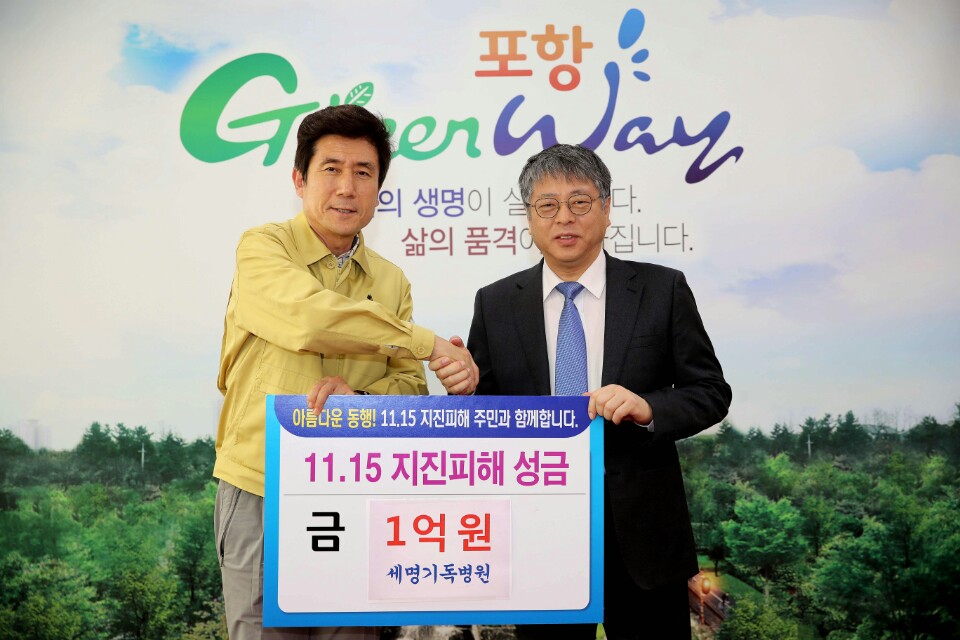 지진피해 복구 지원 성금 기탁 소식입니다.