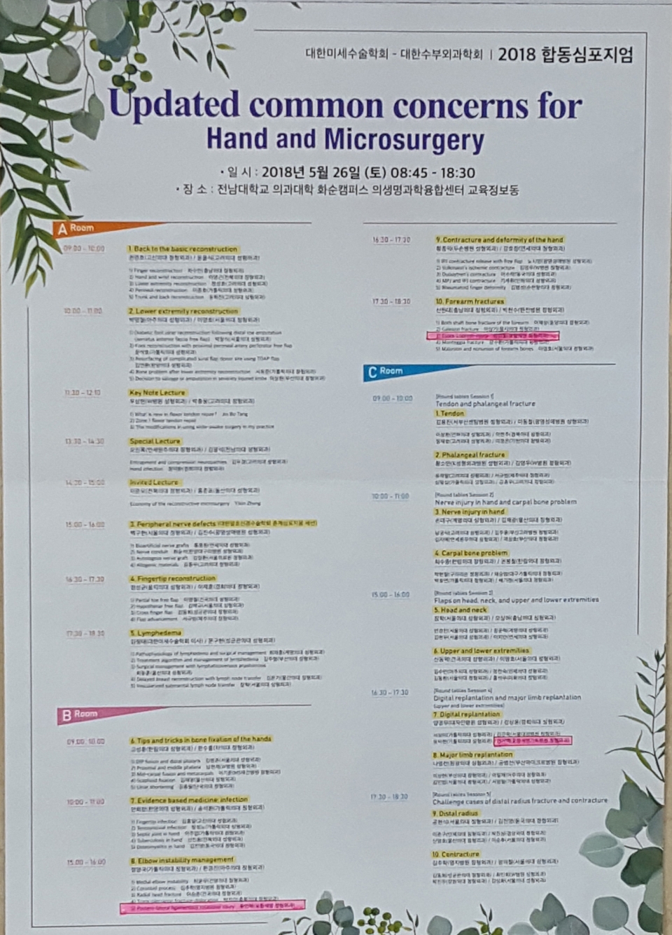 우리 병원 스텝의 대한미세수술학회-대한수부외과학회 2018년 합동 심포지엄의 연자 참여 소식입니다.