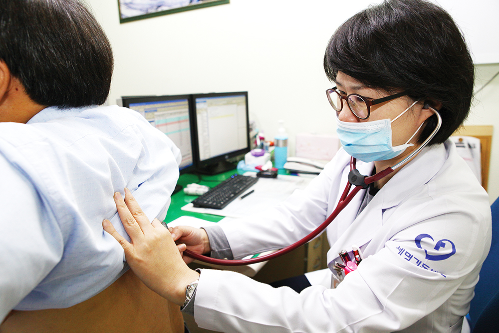 호흡기내과 서완다 과장이 한 남성 환자를 진료하고 있습니다. |