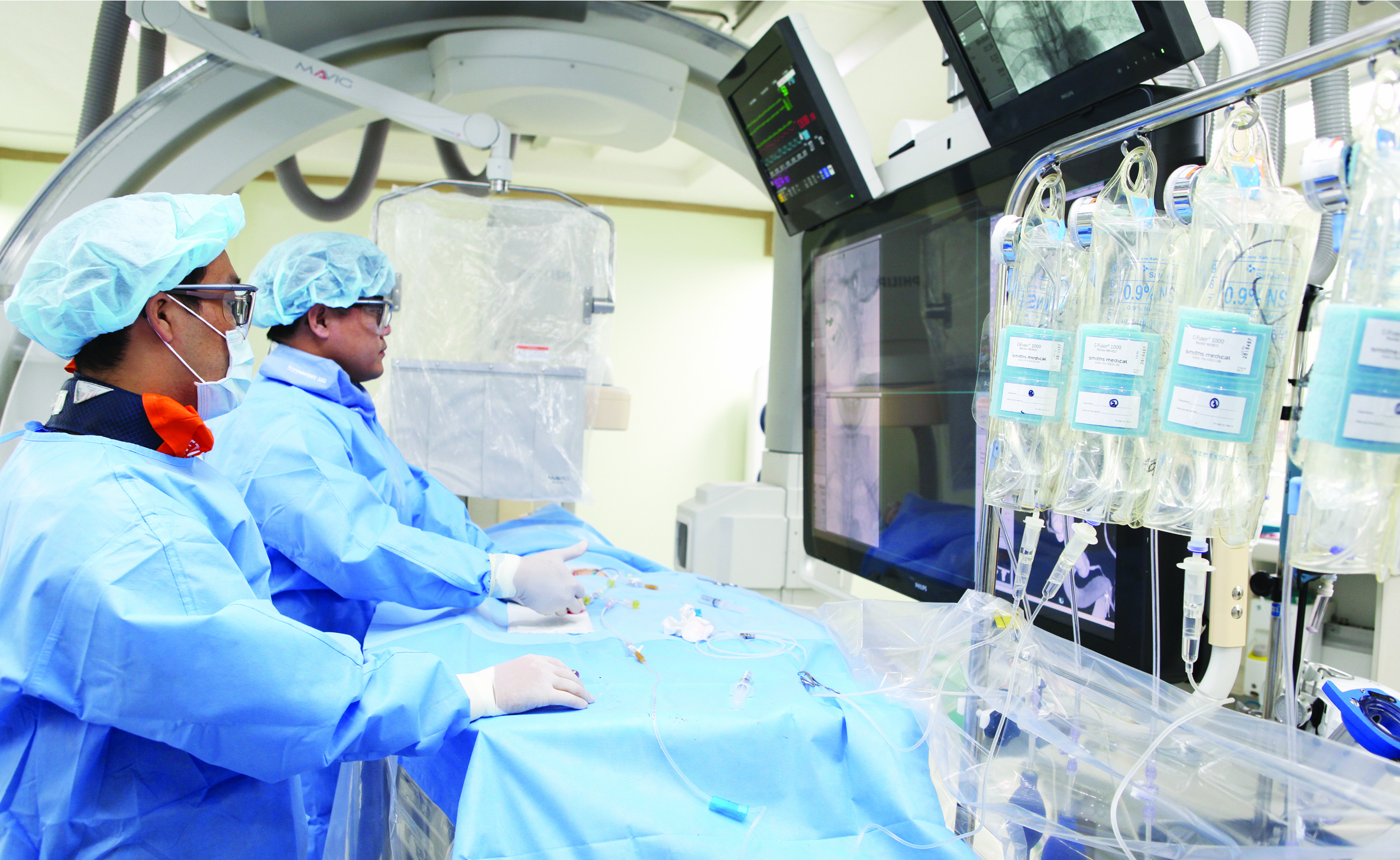 우리 병원 신경외과 전문의가 뇌혈관조영술을 하고 있습니다. |