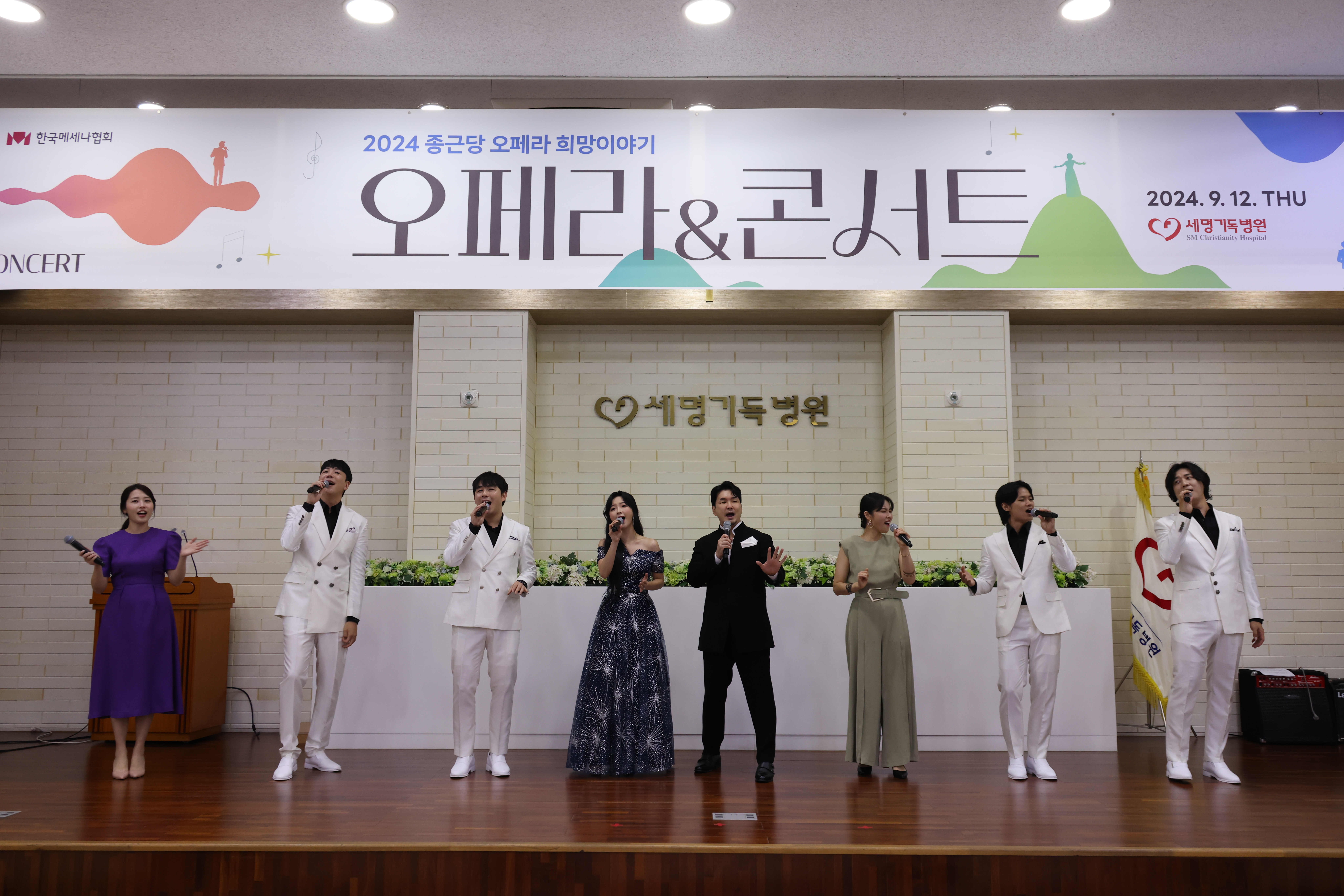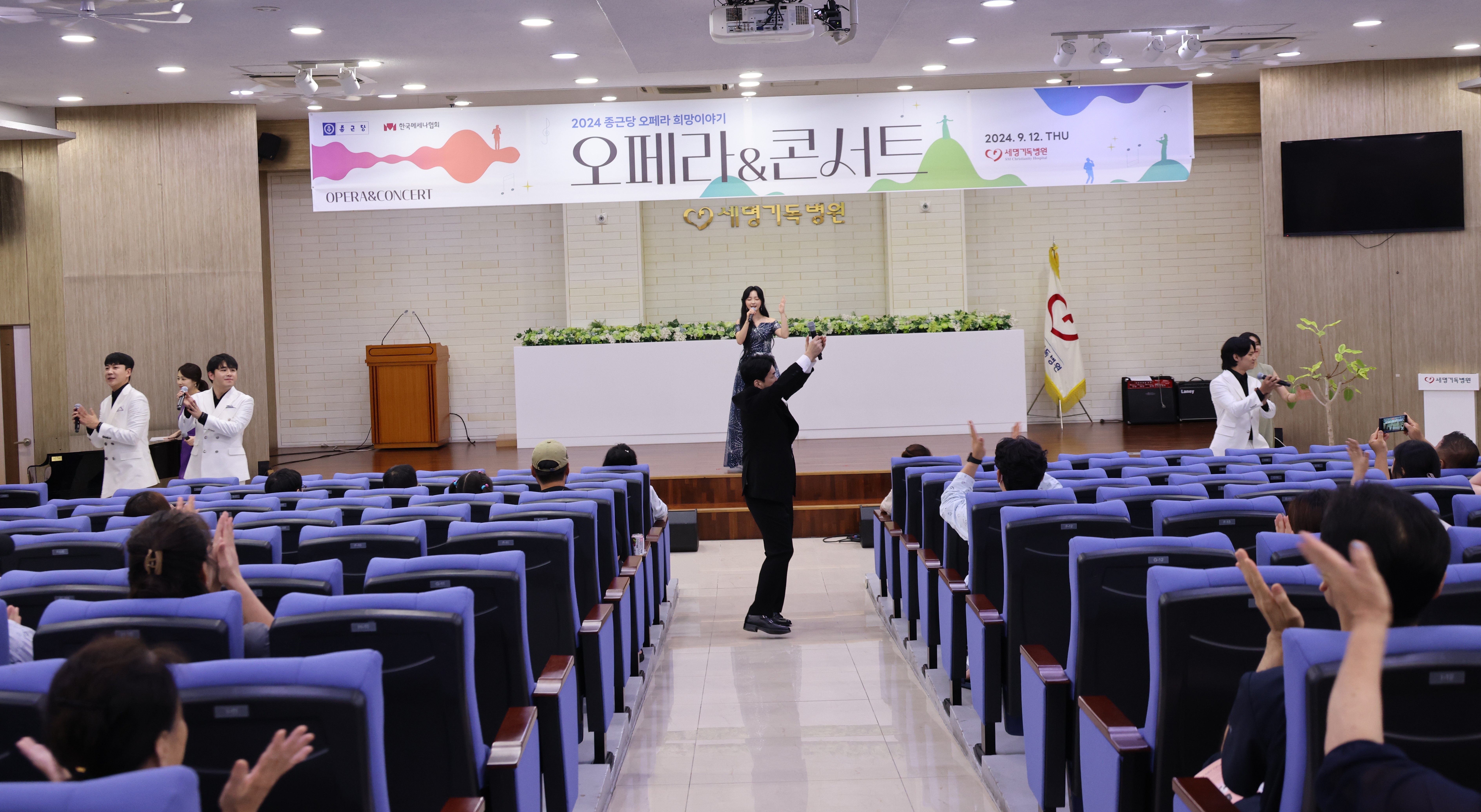 우리 병원은 지난 12일 오후 6시 본관 10층 대강당 광제홀에서 종근당과 한국메세나협회가 함께하는 ‘2024 종근당 오페라 희망 이야기 오페라&콘서트’를 열었습니다.