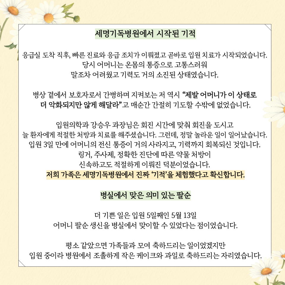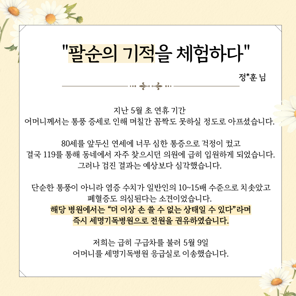 환자들이 보낸 진심 어린 감사는