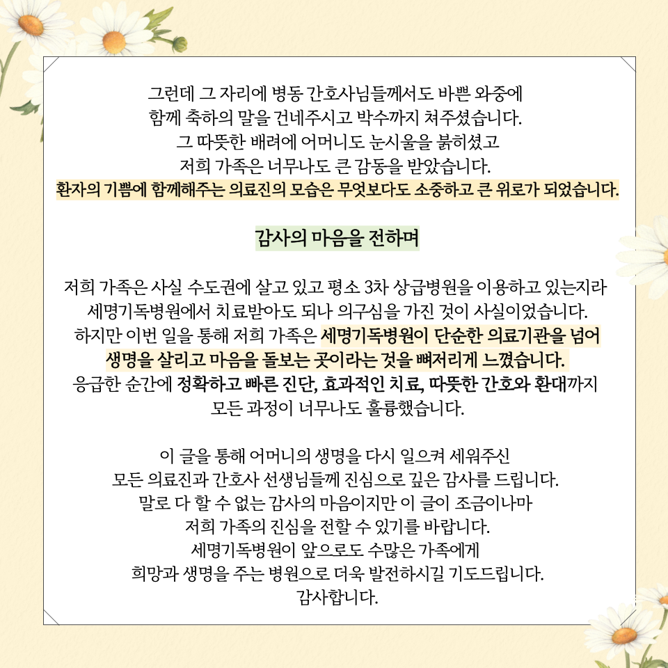 우리 세명기독병원의 큰 힘이 됩니다.