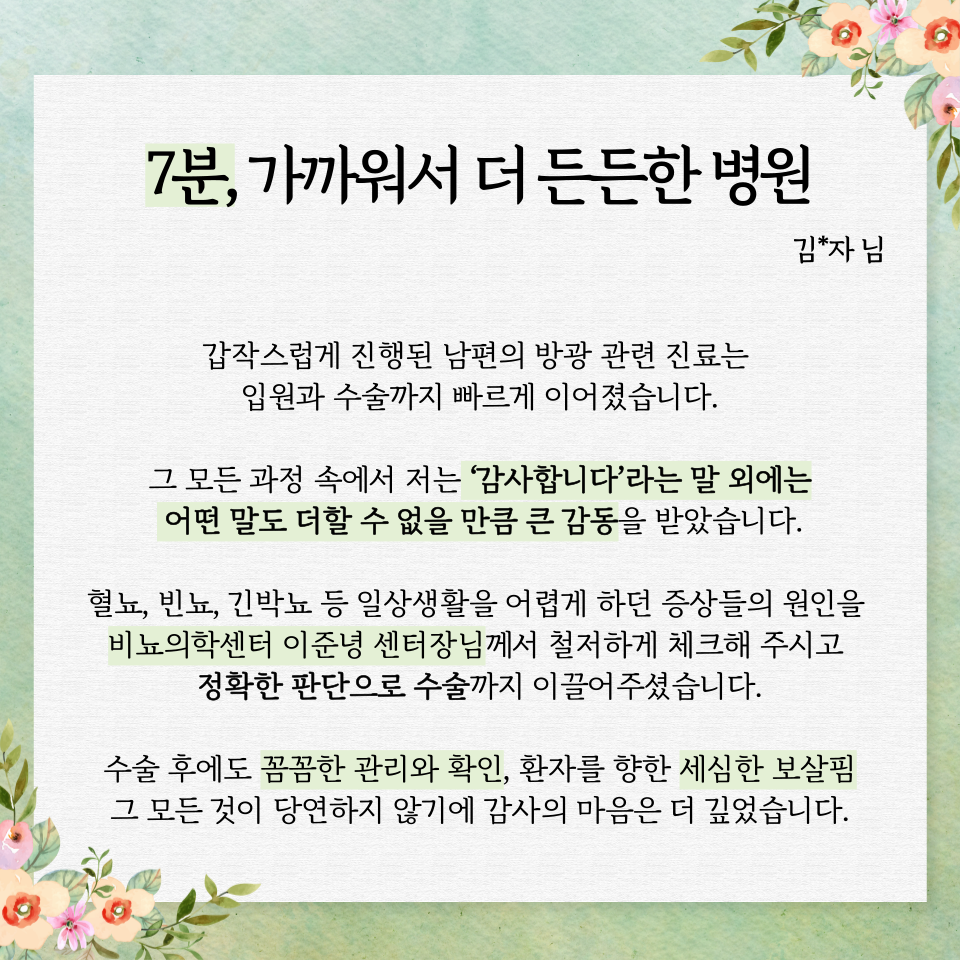 비뇨의학센터 이준녕 센터장님 미담 사연2 |
