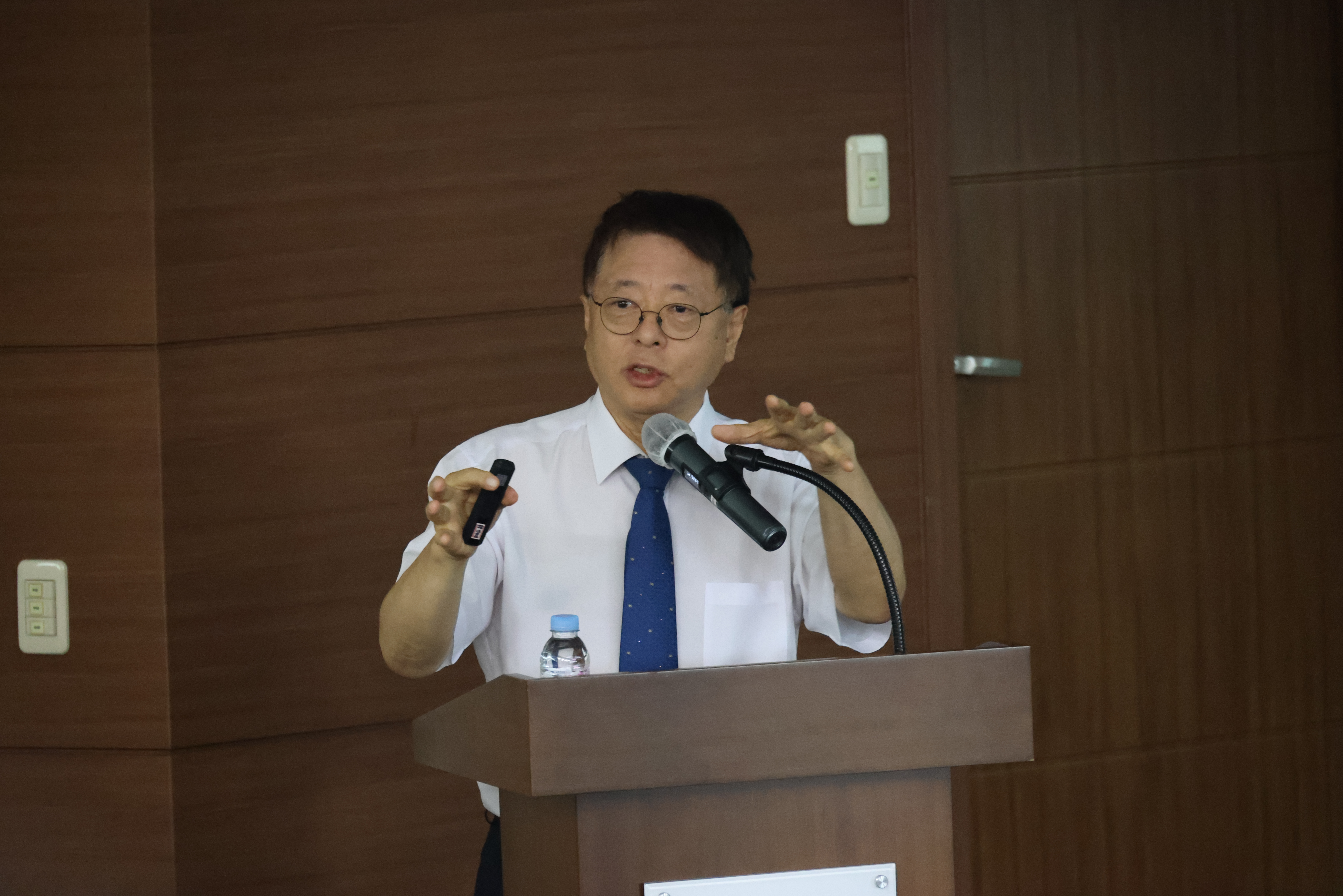 한동선 병원장이 지역 의료인 대상 심뇌혈관 질환 예방 및 관리 교육에서 설명하는 모습 |