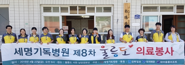 포항 세명병원에서는 지난 2011년 4월 울릉도 의료봉사를 시작한 이후 매년 봄과 가을 2회에 걸쳐 울릉도의료봉사를 진행하며 지금까지 8차례에 걸쳐 총 1,600여명의 어르신들을 진료했다.