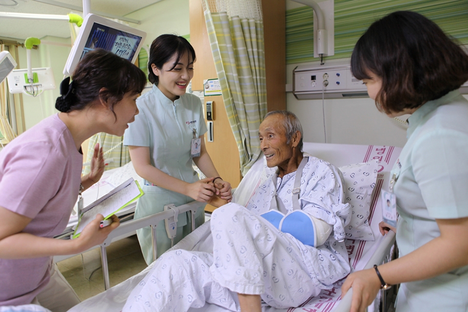 간호사가 입원 병상의 전문 간호서비스를 24시간 전담하고, 간호조무사는 간호사를 도와 보조 역할을 수행해 개인적으로 간병인을 두거나 보호자가 환자를 돌보지 않고도 입원 생활을 편안하게 유지할 수 있다.