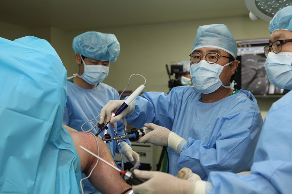 ▲ 세명기독병원 정형성형병원 류인혁 원장이 최근 어깨 관절경 수술을 하고 있다.