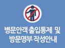 환자의 안전과 감염예방을 위해 병문안객 출입통제 및 방문명부를 작성하고 있습니다.