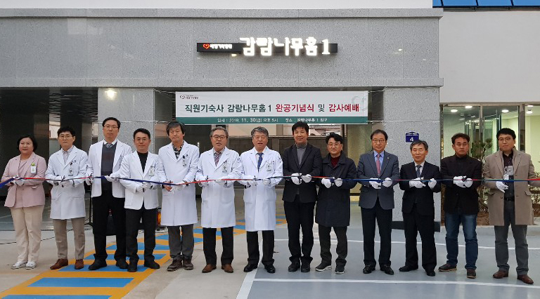 우리병원에서는 간호사 기숙사를 신축하고 30일 준공 기념식을 가졌습니다.신축한 기숙사는 여간호사 전용 기숙사로 운영되며 2018년 2월 19일 신축공사를 시작한 지상 6층 2천548.79㎡(약 771평)의 규모로서, 총 공사비 32억여 원을 투입 지난 20일 완공했습니다.신축한 감람나무홈1 간호사 기숙사는 1층에 장애인 직원을 위한 2실포함 14개실과 관리실, 2~6층은 각각 23개실이 배치되어 총 129실 규모이다. 신축한 기숙사는 개인 생활 보장을 위해 1인 1실 시스템으로 운영되며 각 실에는 옷장과 침대, 개별냉장고, 샤워실, 책상, 에어컨 등의 최신 시설과 함께 각 층에 별도의 공용시설인 탕비실과 세탁실을 갖추고 있습니다. 한동선 병원장 식축 기숙사 완공 기념식에서 “기숙사 이름을 ‘감람나무홈’으로 정한 것은 이스라엘의 메마른 황야에서도 풍성하게 자라나는 감람나무와 같이 이곳에 거하는 우리 직원들이 번성하기를 축복하는 마음으로 정하였다” 고 전하며 “직원들이 행복한 병원이 더 좋은 병원을 위한 필수 요소임을 잊지 않고 직원만족을 통해 환자만족을 이뤄가는 병원을 만들어 가겠다” 고 말했습니다. 한편 세명기독병원은 현재 신축 기숙사를 포함해 여직원용 4곳과 남직원용 1곳 등 모두 5곳의 기숙사를 보유하고 있고, 직원 131명(신축기숙사 제외)이 입주하고 있습니다.