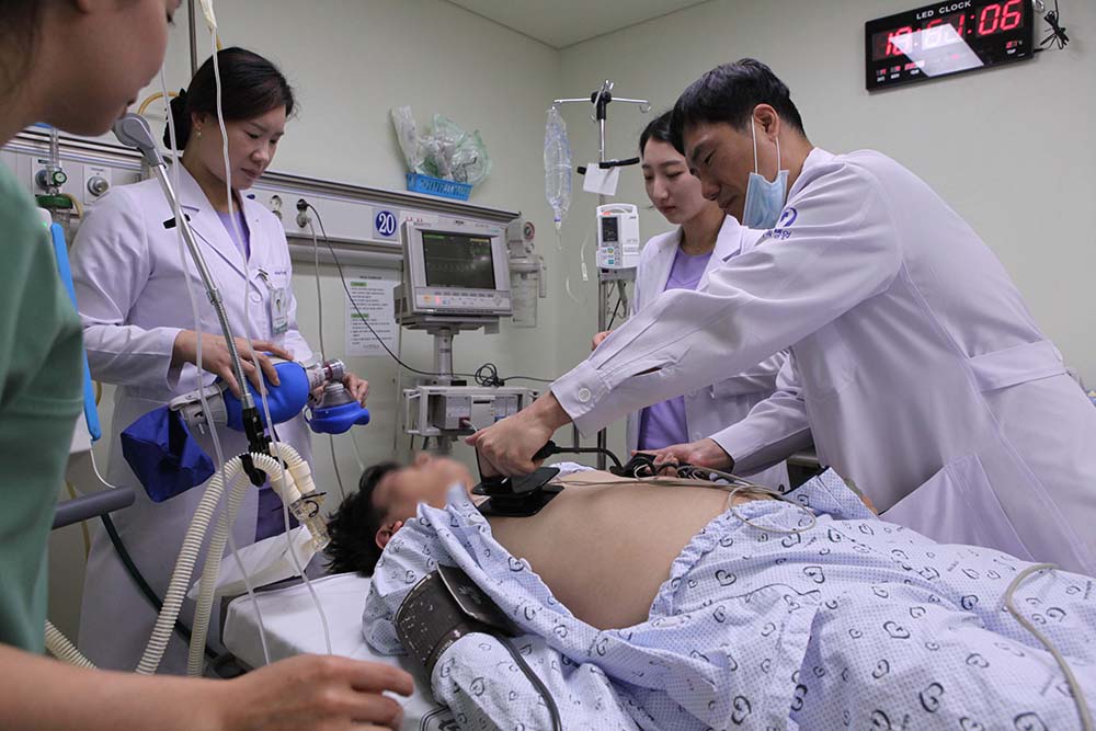 우리 병원은 응급의료센터 입구에 응급환자 분류소를 설치하여 중증환자를 우선진료하고 응급실전용 방사선실과 CT실 및 혈관조영촬영실을 구축하여 응급진료와 치료가 실시간으로 진행됩니다. 또한 감염방지를 위해 응급실 입구에 ·열감지기·음압격리실·보호자대기실을 갖췄으며 응급환자 침상 간격을 대폭 넓혀 환자 치료 편의와 감염 예방에 주력하고 있습니다.