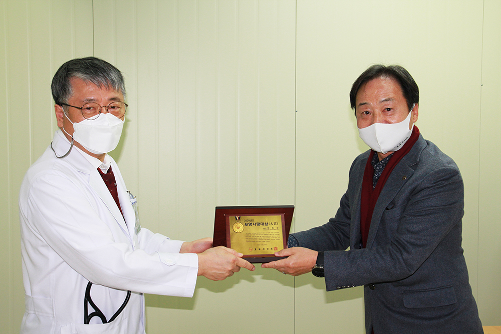 한동선 병원장이 31일 동관 8층 총무과에서 ‘2020년도 포항사랑대상’을 수상했습니다. |