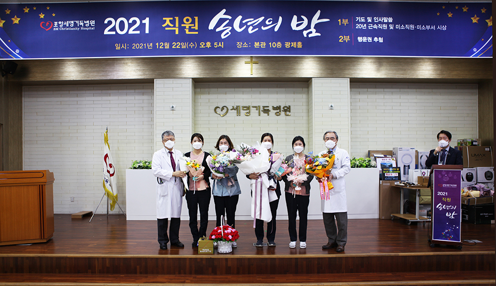 한동선 병원장은 “시끌벅적하고 크게 ‘송년의 밤’ 행사를 치러야 하는데 간소화게 마련해 아쉽다”라며 “코로나19 백신 3차 추가 접종이 계속되고 치료제가 나왔으니 희망을 가져 내년 송년의 밤 행사는 기분 좋게 맞이하길 바란다”라고 밝혔습니다.