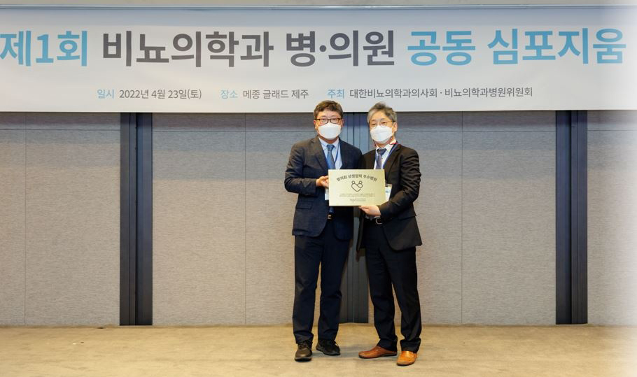우리 병원을 대표해 비뇨의학과 이중호 과장이 병의원 상생 협력 우수 병원 현판을 받았습니다. |