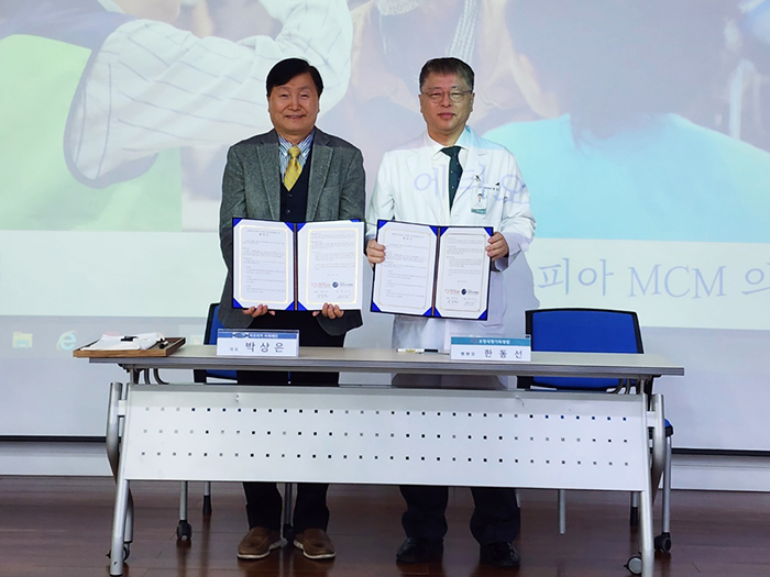 한동선 병원장과 박상은 대표가 지난 21일 업무협약을 맺었습니다. |