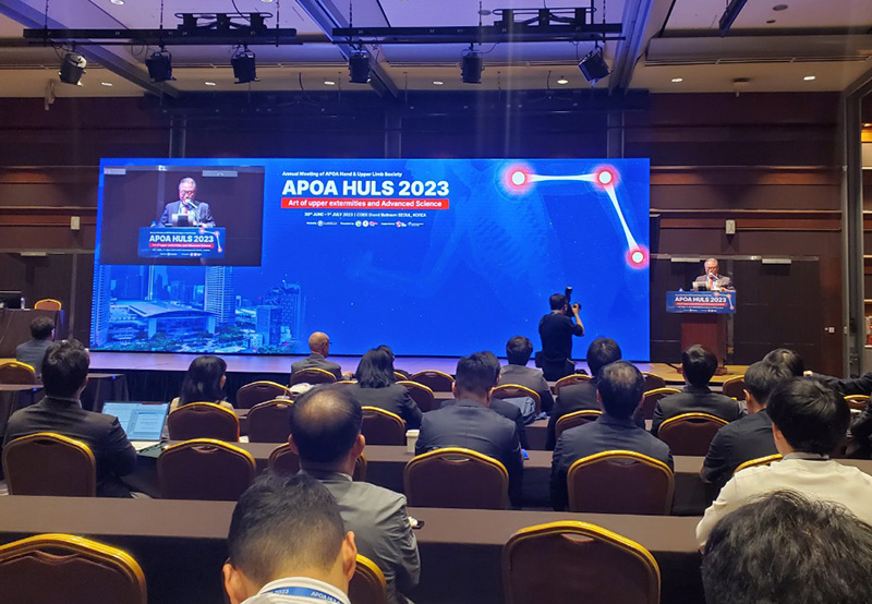 대한수부외과학회가 주최하고 아시아태평양 정형외과 수부상지학회가 주관한 이번 학술대회는 상지의 예술과 첨단 과학(Art and Advanced Science of the Upper Extremities)’ 주제로 호주, 일본, 싱가포르 등 19개국 500여명 수부·상지 전문의와 전문가가 모여 다양한 연구 결과를 공유, 상지 수술과 미래 과학기술을 결합한 혁신적인 의료 기술을 소개하며 글로벌 의학 발전에 이바지하기 위해 마련됐습니다.