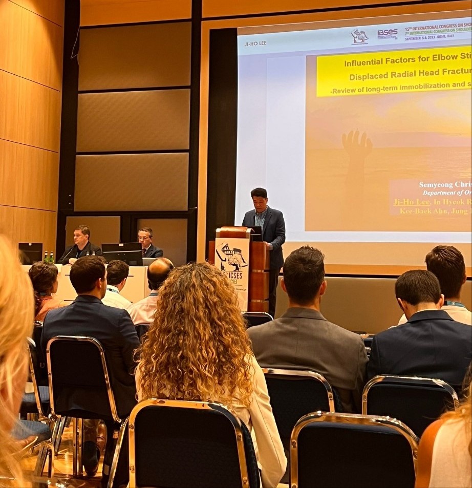 이지호 부장은‘요골두 골절 후 주관절 강직 발생 요인 분석’(Factors for elbow stiffness after surgically treated displaced radial head fractures- Reviews of immobilization period and soft tissue injuries)에 대한 논문을 발표했습니다.