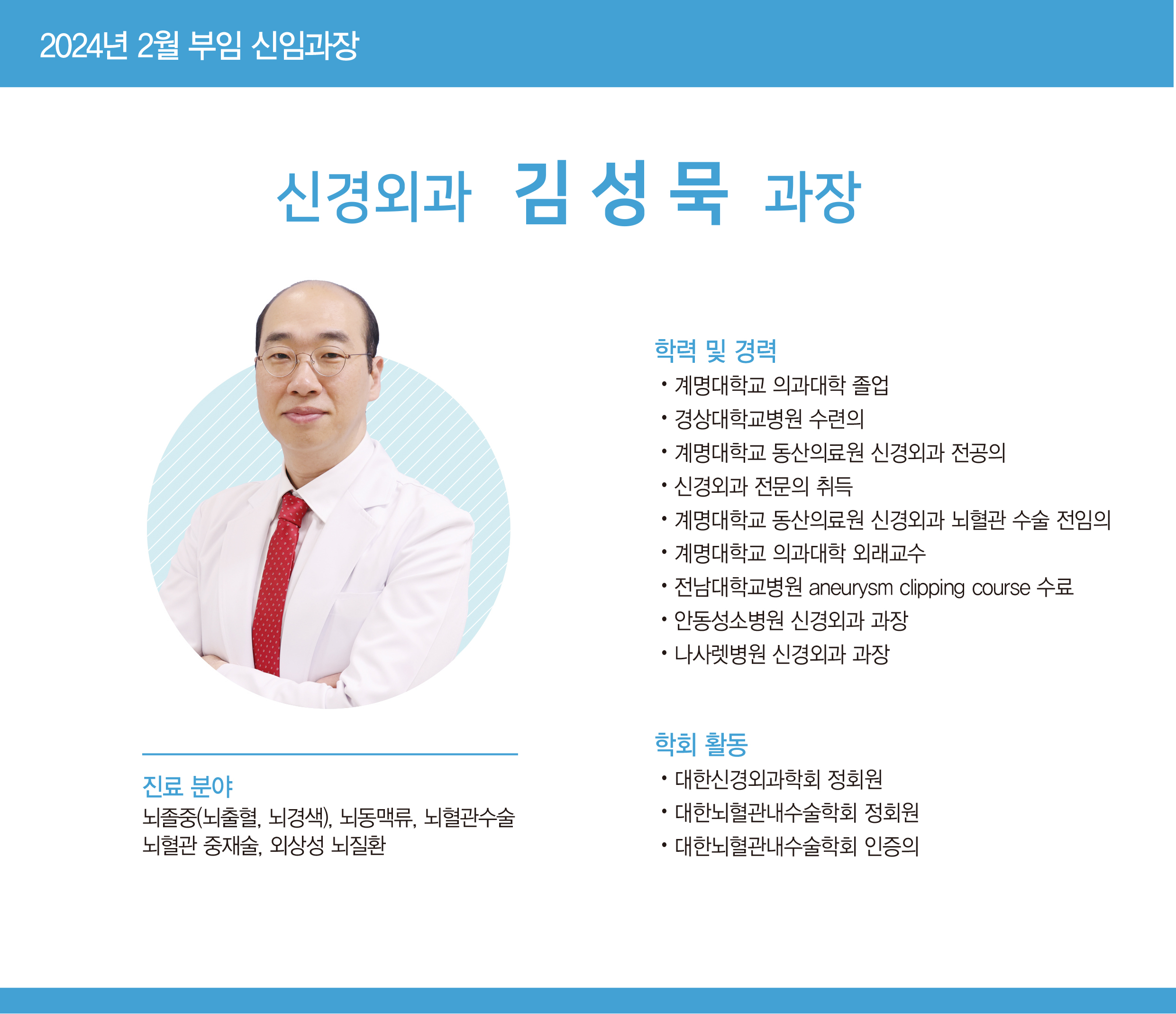 신경외과 김성묵 과장 부임표 |