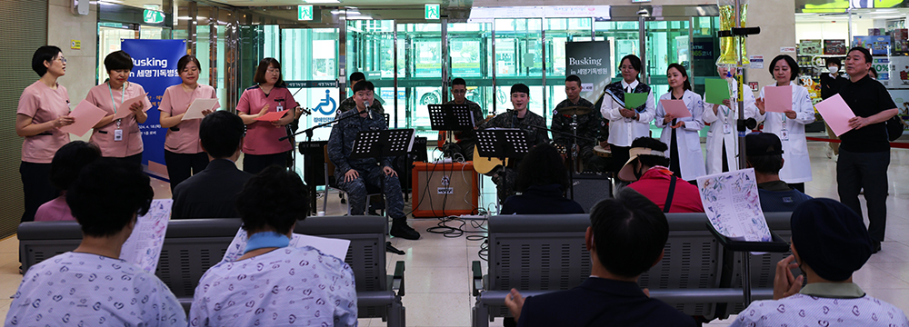 이번 버스킹을 주관한 우리 병원 원목실 강남호 목사는 “멋진 공연을 펼쳐준 해군항공사와 해병대1사단에 감사하다. 이 시간이 환자와 보호자, 직원들에게 힐링의 시간이 되길 바라고 앞으로도 알찬 공연으로 찾아가겠다”고 말했습니다.