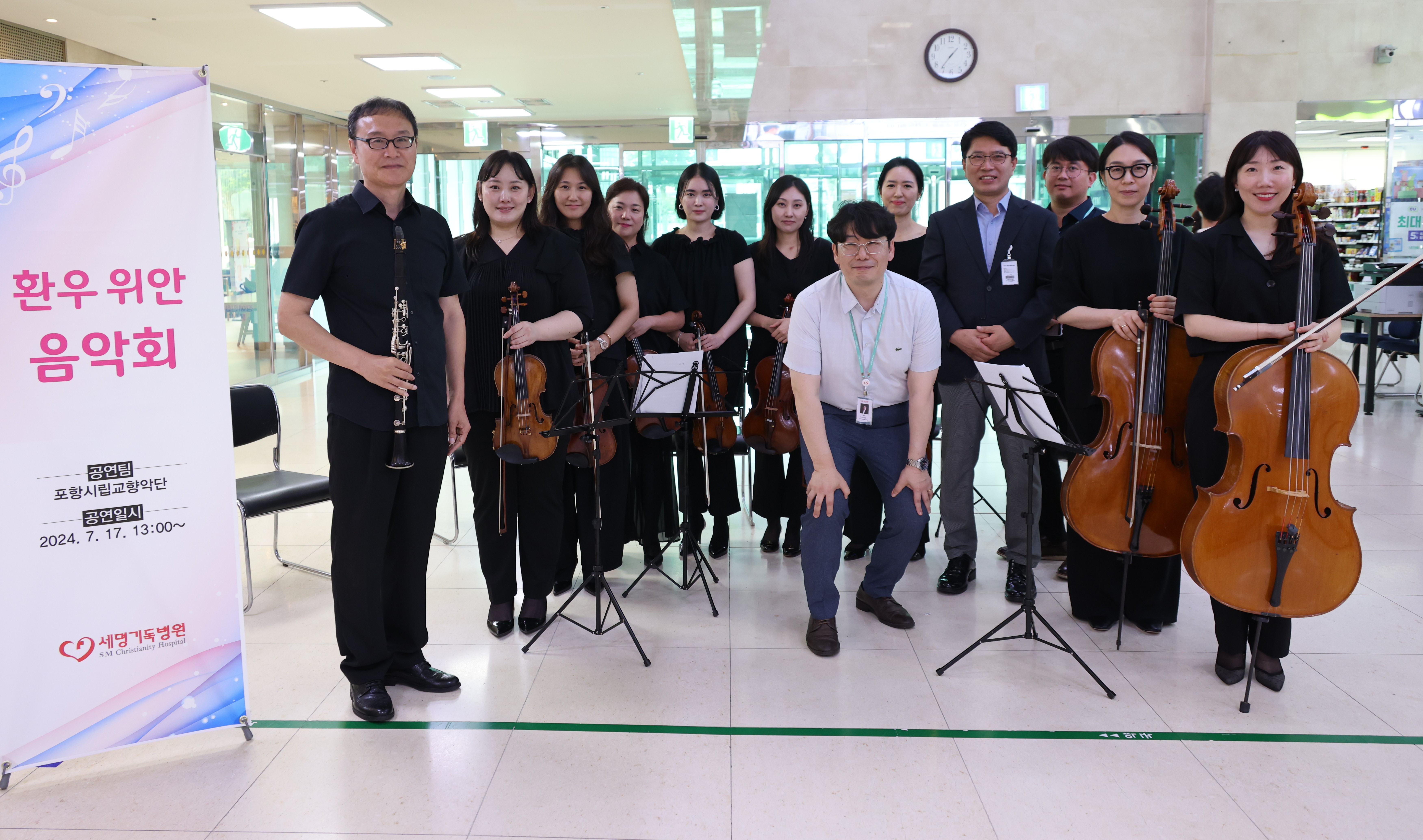 환자와 보호자, 직원 등 100여 명이 참석한 이번 음악회는 포항시립교향악단을 초청, 환자와 보호자 등 내원객에게 클래식 음악을 통해 마음의 안정과 위안을 주기 위해 마련했습니다.