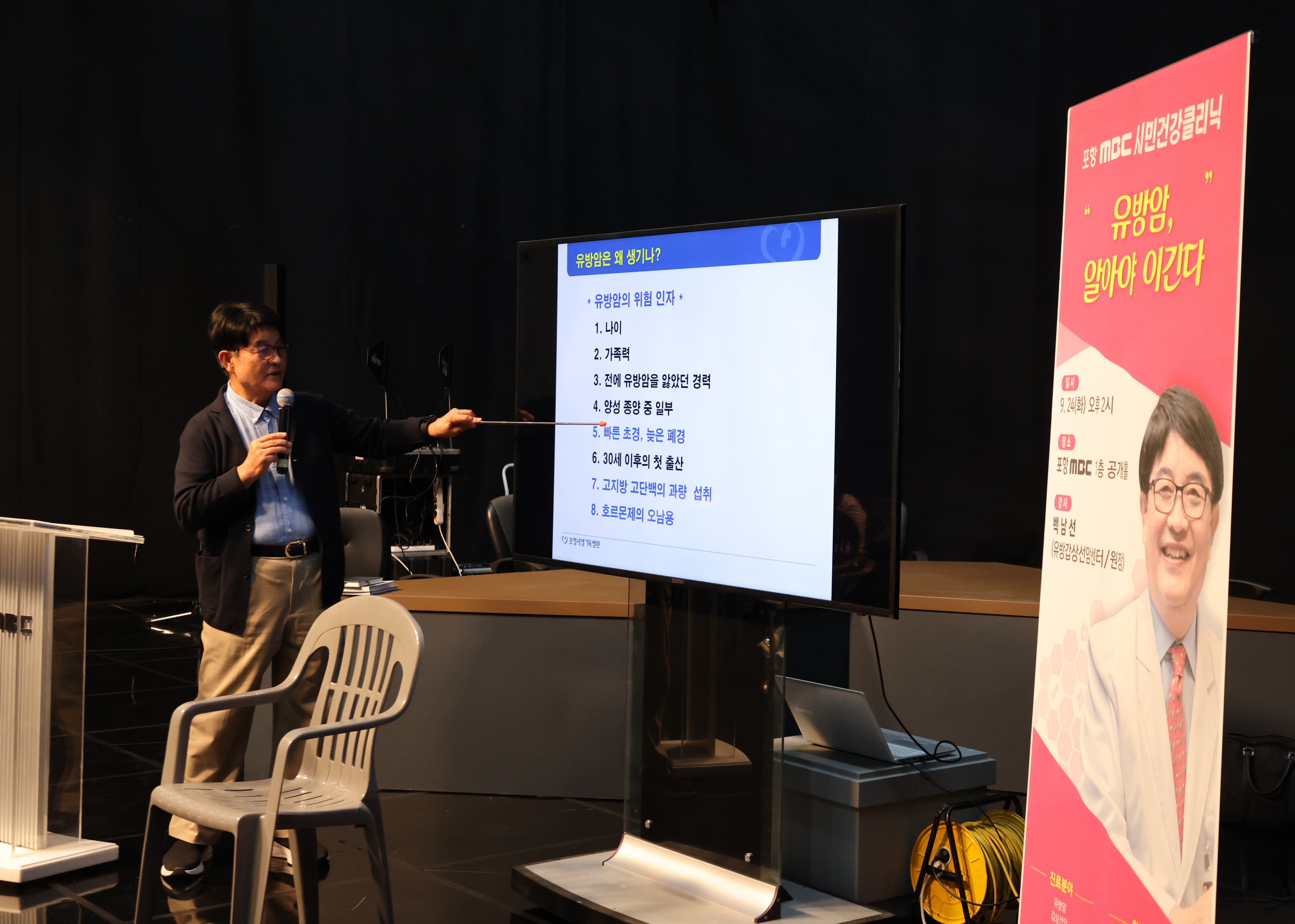 9월 MBC 시민건강클리닉 강의 중인 유방갑상선암센터 백남선 원장 |